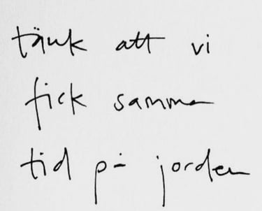 "Tack. Tack för allt ditt stöd. Det är nånting i vår dynamik som har blivit så rätt att det möjliggjort att jag nått de här djupa platserna som jag inte har nått innan. Det är så ovärderligt att jag inte helt vet hur jag ska uttrycka det. Tusen tusen tack!"